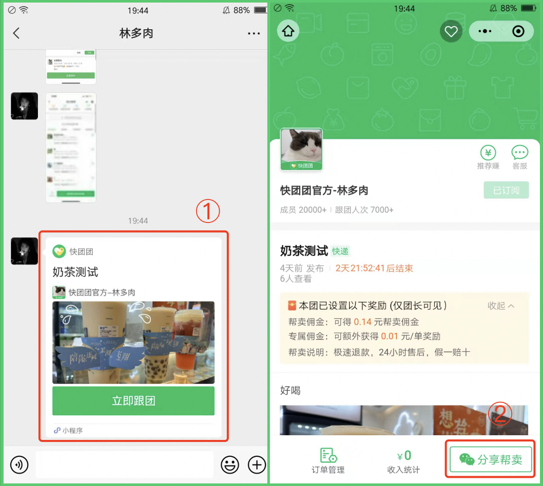 只要顾客通过你的团购链接或者分享海报下单购买,你就可以收到帮卖佣金